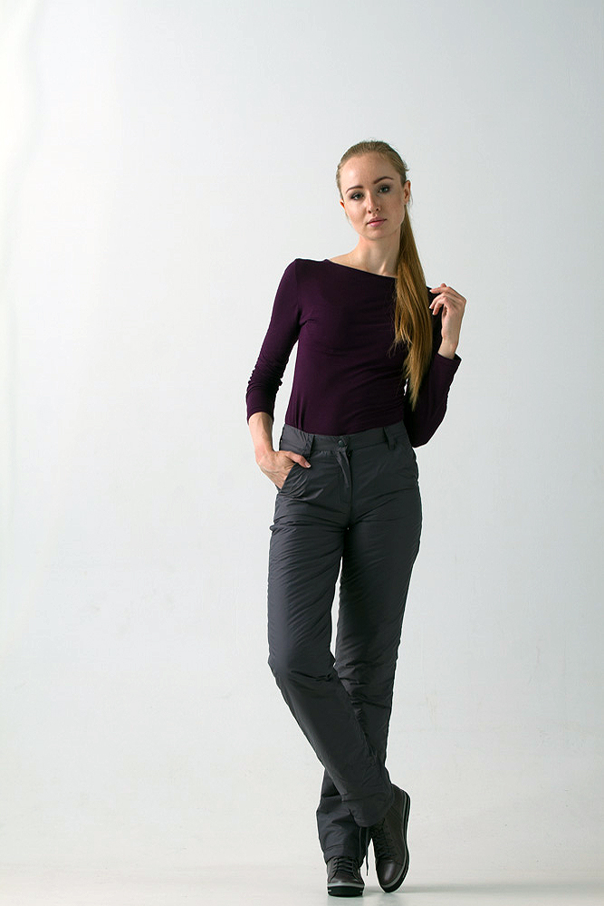 Отличные брюки для женщин, любящих зимние виды спорта или просто ведущих активный образ жизни. Прямой свободный покрой не будет стеснять движения. Застежка на молнию и кнопку, на поясе предусмотрены шлевки для ремня, а также для удобства сзади в пояс вставлена резинка.ПО бокам удобные втачные карманы, сзади накладные