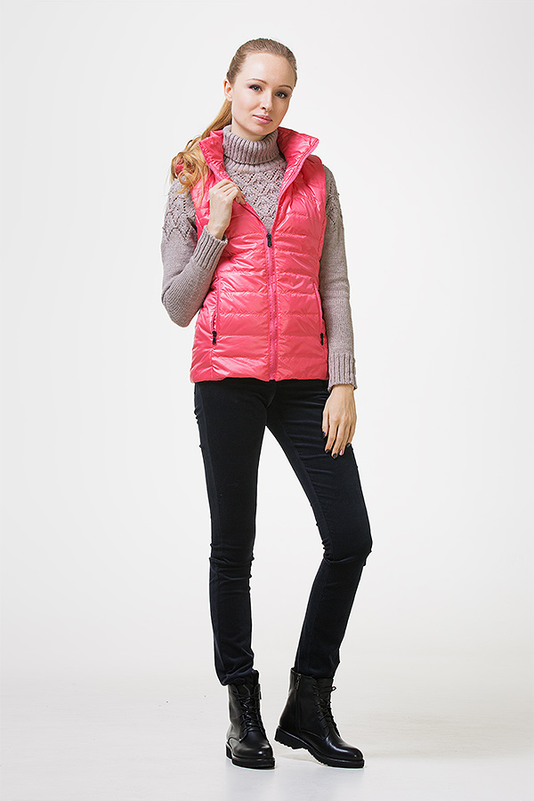 Универсальная, практичная, стильная жилетка, с отстегивающимся капюшоном, двумя прорезными карманами.